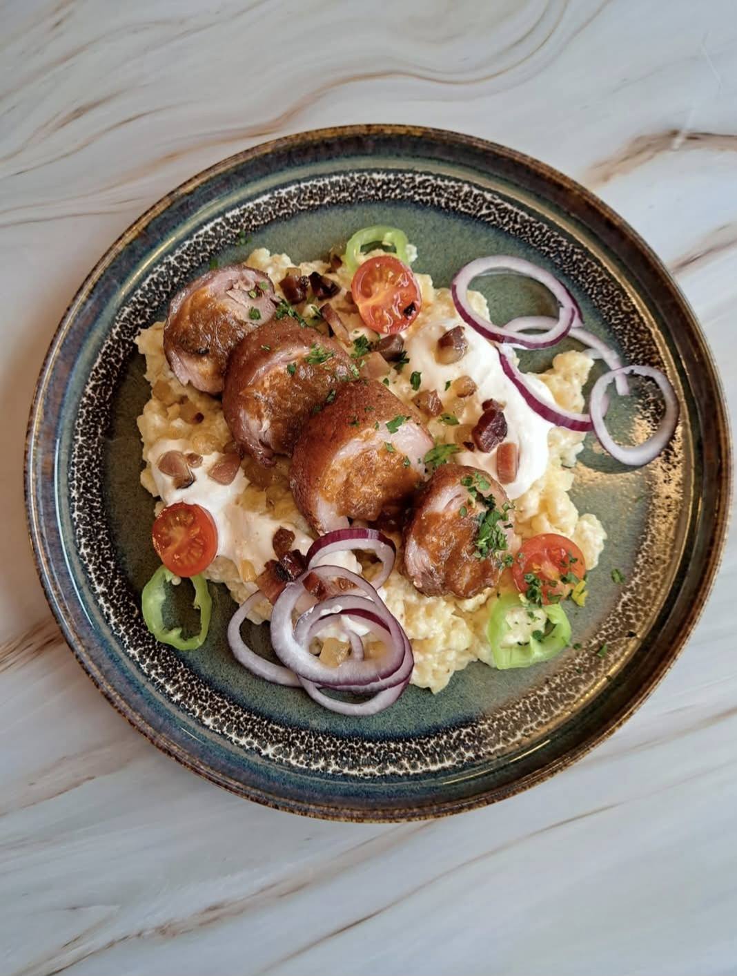 Sertéspofa juhtúrós sztrapacskával